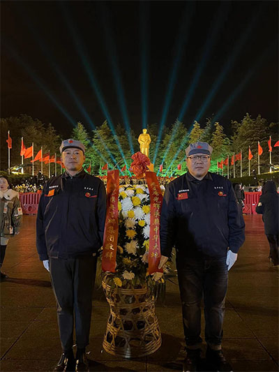 奧吉娜集團總裁魏國平博士選派員工赴韶山沖,代表奧吉娜集團向紀念毛澤東銅像敬獻挽聯花籃祭拜偉人,